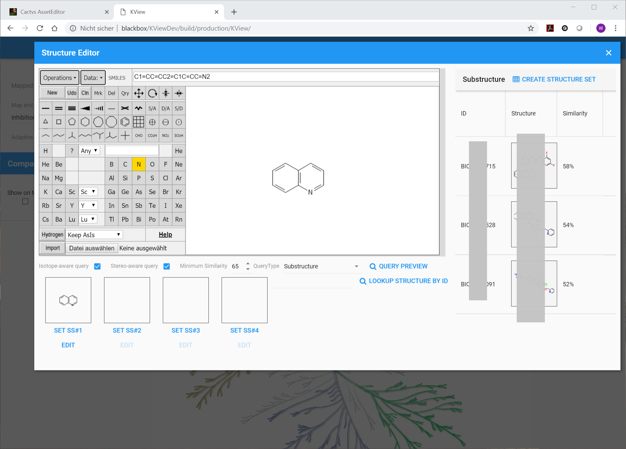 • Our standard Web sketcher for structure and query fragment input, and editing of existing structures or query fragments.