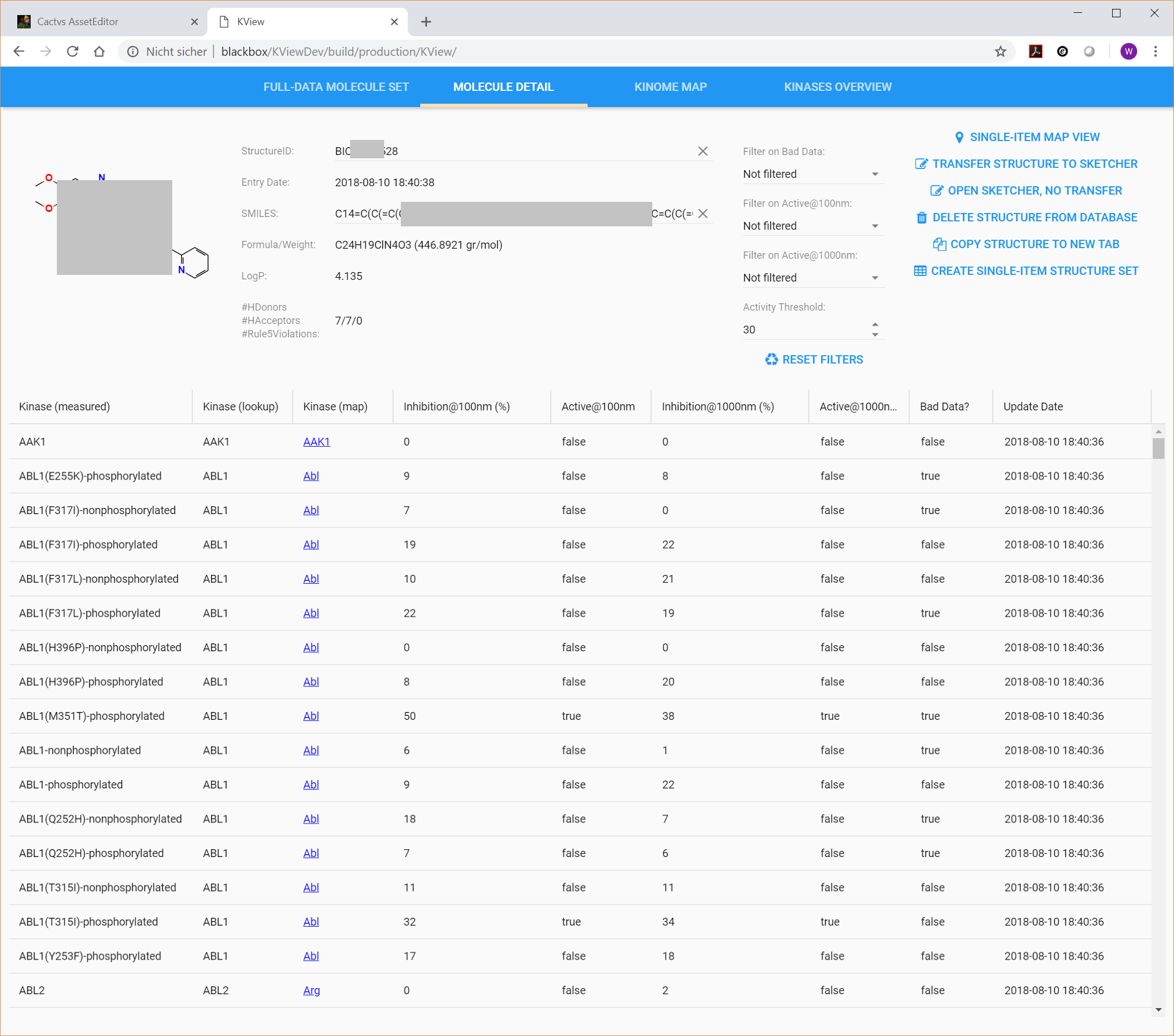 • A custom batch script to convert the raw data, and upload it into the database. The data consisted of a SDF file, and an Excel table - both with encoding quirks which could fortunately be addressed by script processing.